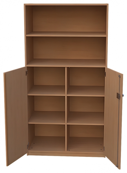 Kombischrank, BxHxT 100 x 190 x 60 cm oben: offen, 1 Einlegebodendarunter: 1 fester Fachbodenunten: 2 Türen, abschließbar, Dreholive, Mittelwand,2 x 2 Einlegeböden