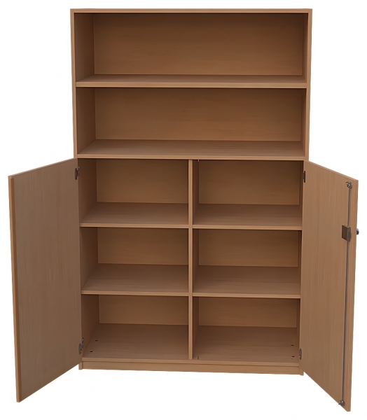 Kombischrank, BxHxT 120 x 190 x 60 cm oben: offen, 1 Einlegebodendarunter: 1 fester Fachbodenunten: 2 Türen, abschließbar, Dreholive, Mittelwand,2 x 2 Einlegeböden