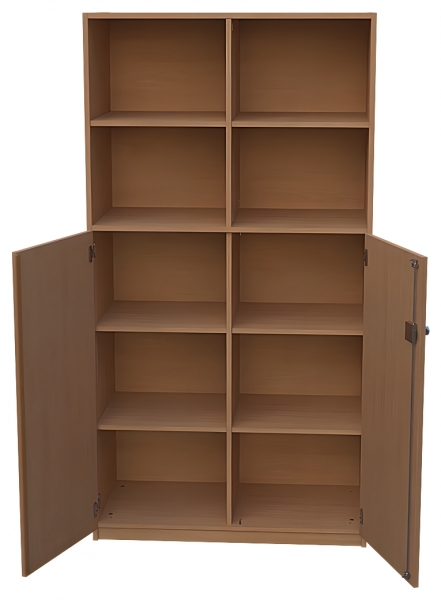 Kombischrank, BxHxT 100 x 190 x 50 cm oben: offen, Mittelwand,2 x 1 Einlegebodendarunter: 1 fester Fachbodenunten: 2 Türen, abschließbar, Dreholive, Mittelwand,2 x 2 Einlegeböden