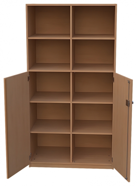 Kombischrank, BxHxT 100 x 190 x 60 cm oben: offen, Mittelwand,2 x 1 Einlegebodendarunter: 1 fester Fachbodenunten: 2 Türen, abschließbar, Dreholive, Mittelwand,2 x 2 Einlegeböden
