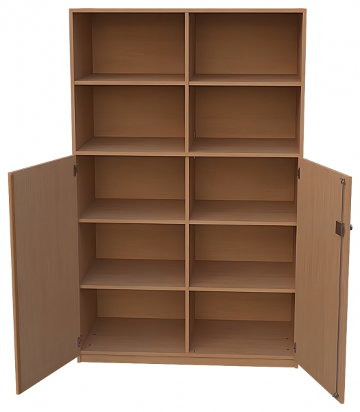 Kombischrank, BxHxT 120 x 190 x 60 cm oben: offen, Mittelwand,2 x 1 Einlegebodendarunter: 1 fester Fachbodenunten: 2 Türen, abschließbar, Dreholive, Mittelwand,2 x 2 Einlegeböden