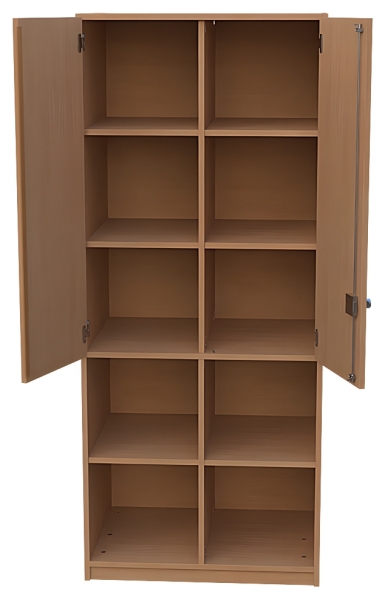 Kombischrank, BxHxT 80 x 190 x 60 cm unten: offen, Mittelwand,2 x 1 Einlegebödendarunter: 1 fester Fachbodenoben: 2 Türen, abschließbar, Dreholive, Mittelwand,2 x 2 Einlegeböden