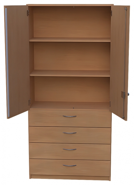 Kombischrank, BxHxT 90 x 190 x 40 cm oben: 2 Türen, abschließbar, Dreholive, 2 Einlegeboden unten: 4 Schubkästen,Segmentbogengriffe( RM 128 mm ) verchromt matt,SoftClose Auszüge lichte Nutzlänge der Schubkästenbeträgt 33 cm