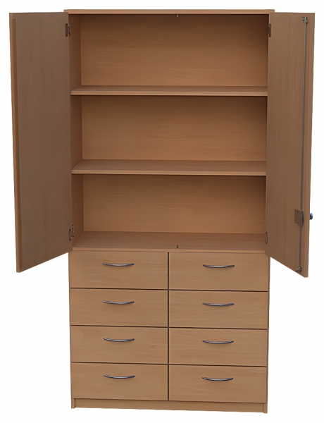 Kombischrank, BxHxT 95 x 190 x 40 cm oben: 2 Türen, abschließbar, Dreholive, 2 Einlegeboden unten: 2 x 4 Schubkästen,Segmentbogengriffe( RM 128 mm ) verchromt matt,SoftClose Auszüge lichte Nutzlänge der Schubkästenbeträgt 33 cm
