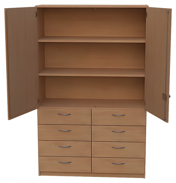 Kombischrank, BxHxT 120 x 190 x 50 cm oben: 2 Türen, abschließbar, Dreholive, 2 Einlegeboden unten: 2 x 4 Schubkästen,Segmentbogengriffe( RM 128 mm ) verchromt matt,SoftClose Auszüge lichte Nutzlänge der Schubkästenbeträgt 33 cm
