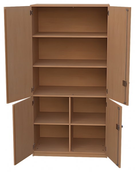 Kombischrank, BxHxT 95 x 190 x 60 cm oben: 2 Türen, abschließbar, Dreholive, 2 Einlegebödendarunter: 1 fester Fachbodenunten: 2 Türen, abschließbar, Dreholive, Mittelwand,2 x 1 Einlegeböden