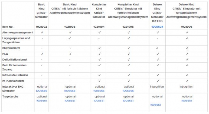 Dieses vollständige Wiederbelebungssystem ist für den Einzel- oder Gruppenunterricht in lebensrettenden Techniken an Kindern vorgesehen. Es bietet vollständige Trainingsfähigkeiten für erweiterte lebensrettende Maßnahmen an pädiatrischen Patienten (PALS) und vereint alle Simulationspunkte in einer Übungspuppe. Dadurch wird das Training realistischer und vermittelt den Lernenden ein Gefühl für den kleinen Patientenkörper. Simuliert ein fünfjähriges Kind, 118 cm groß und 9 kg schwer.