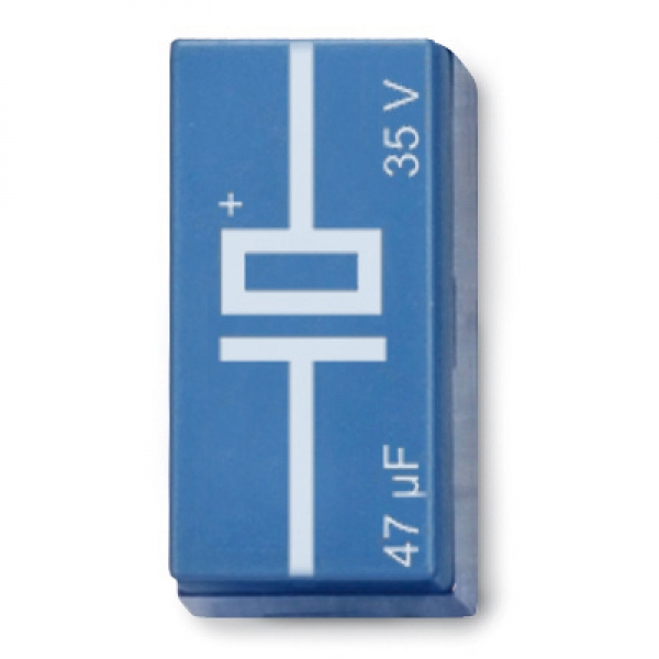 Bauelemente in Steckergehäusen mit zwei Steckern in 19 mm Abstand.