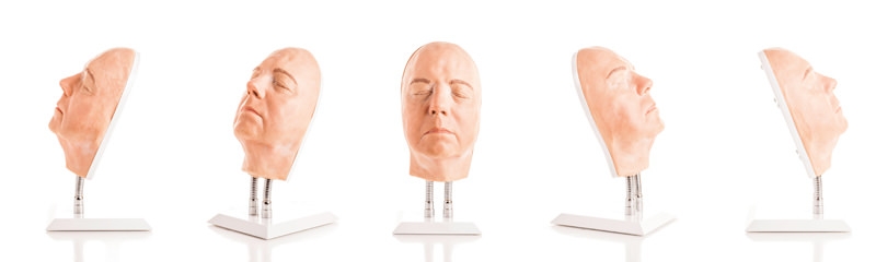 Unsere Gesichtsinjektions-Modelle bestehen aus einem hochwertigen platingehärteten Prothesensilikon mit einem realistischen Tastgefühl. Die Häute werden dann auf einen Hartschaumschädel montiert, der verschiedene Orientierungspunkte aufweist, um den Unterrichtsprozess zu unterstützen. Diese Schädel sind an 2 flexiblen Ständern befestigt, die es ermöglichen, den Kopf in geeignete Positionen zu kippen. Jeder Kopf wird dann von Hand bemalt, mit einer Kunststoffrückwand befestigt und auf einer hochwertigen Basis montiert.