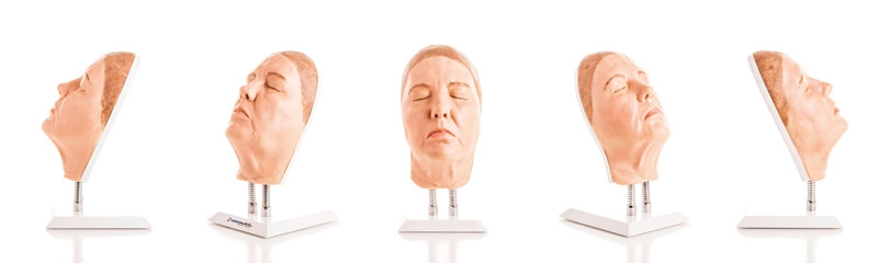 Unsere Gesichtsinjektions-Modelle bestehen aus einem hochwertigen platingehärteten Prothesensilikon mit einem realistischen Tastgefühl. Die Häute werden dann auf einen Hartschaumschädel montiert, der verschiedene Orientierungspunkte aufweist, um den Unterrichtsprozess zu unterstützen. Diese Schädel sind an 2 flexiblen Ständern befestigt, die es ermöglichen, den Kopf in geeignete Positionen zu kippen. Jeder Kopf wird dann von Hand bemalt, mit einer Kunststoffrückwand befestigt und auf einer hochwertigen Basis montiert.