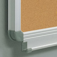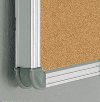 Die Ecken der Tafelfläche sind durch profilübergreifende, abgerundete Sicherheits- Eckkappen aus ABS- Kunststoff verdeckt.