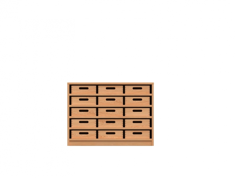 Korpusschrank, BxHxT 82x60x40 cm offen, 4 Fachboden 3x5 Materialkästen mit Griffloch Kästen: Buche natur, lackiert