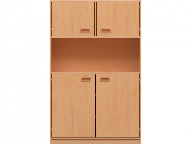 Korpusschrank,BxHxT 102x160x40 cm oben: 2 Türen, Muschelgriffe, Mittelwand, 2x1 Fachboden mitte: offenes Fachunten: 2 Türen, Muschelgriffe2 Fachböden
