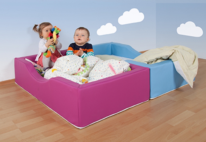 Diese Kinderbettchen sind perfekt für den Krippebereich. Die Kleinen liegen gemütlich auf ihrer Matratze und können sich ganz frei bewegen – ohne dass die Gefahr ensteht, dass sie aus dem Bett rollen – dafür sorgt die super softe Umrandung.