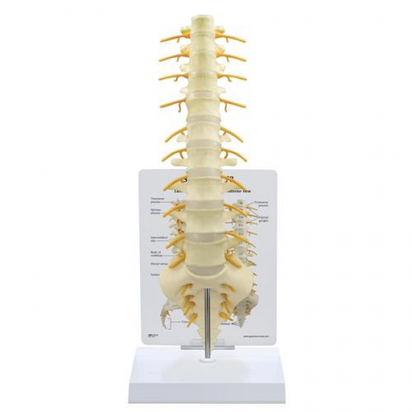 Das Kreuzbein - T8 Wirbelsäulenmodell ist ein Wirbelsäulenabschnitt in Originalgröße mit Rückenmark und Nervenverästelungen.