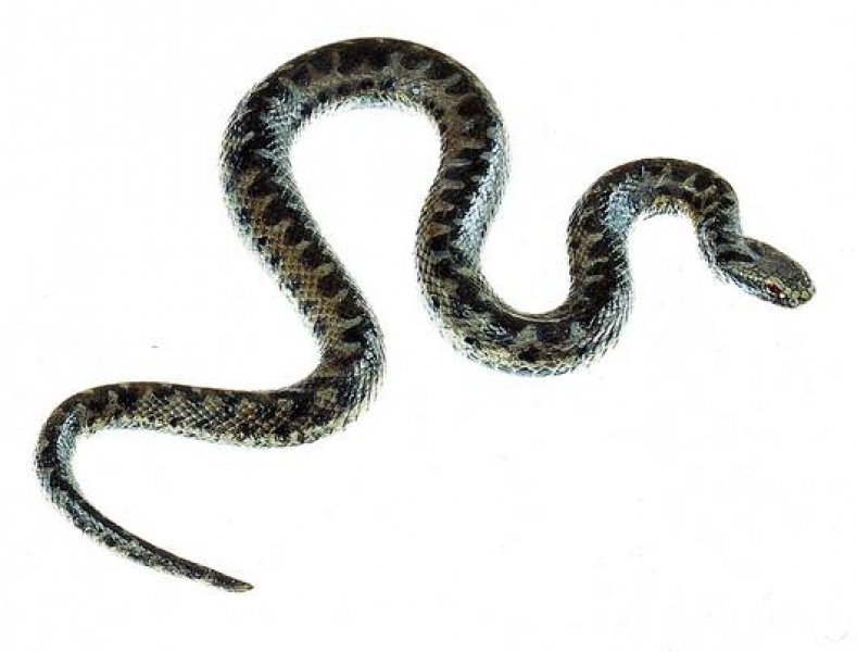 Vipera berus. In natürlicher Größe, aus SOMSO-Plast®. Nach Studiendirektor Christian Groß. Mit aufgedruckter Beschreibung auf grünen Sockel, unter einer transparenten Staubschutzhaube. Schachtelmaße: