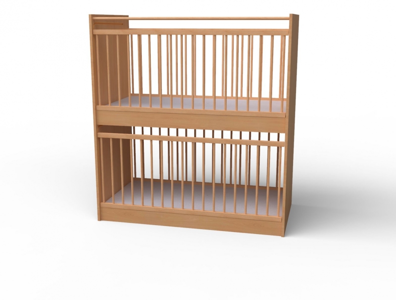 Krippen-Etagenbett Liegefläche 2 x 120 x 60 cm, Frontgitter hochziehbar
