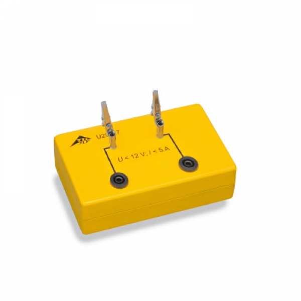 Auf elektrisch sicherer Box zum Aufbau von einfachen elektrischen Stromkreisen mit Sicherheitsexperimentierkabeln. Mit aufgedrucktem Schaltkreissymbol.