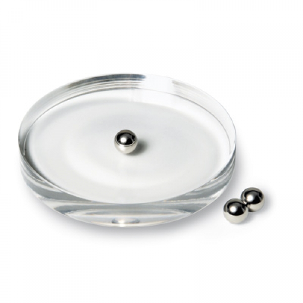 Konkaver Acrylglaskörper mit sphärischer Krümmung. Eine rollende Kugel schwingt darin um ihre Ruhelage wie ein mathematisches Pendel. Der Krümmungsradius entspricht der Pendellänge.