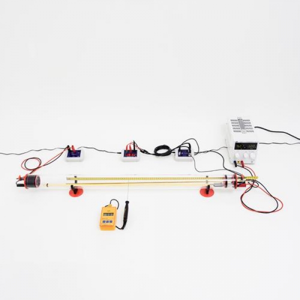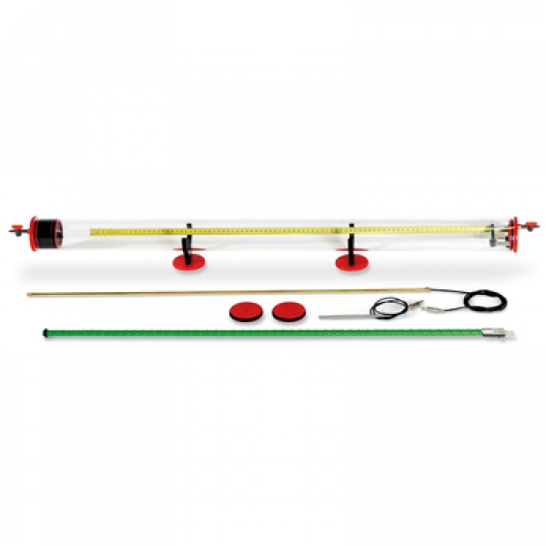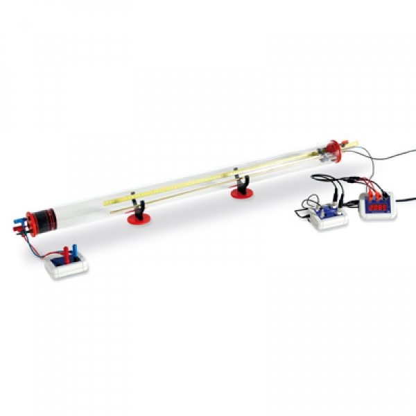 Schallrohr aus Acrylglas mit Lautsprecher und verschiebbarer Skala zur quantitativen Untersuchung von Schallwellen in Luft oder anderen Gasen, insbesondere zur Messung der Wellenlänge und der Schallgeschwindigkeit.
