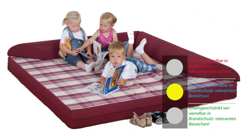 Die Polsterung sowie die Bezüge sind auch in brandgeschützter Ausführung (B1) lieferbar. D