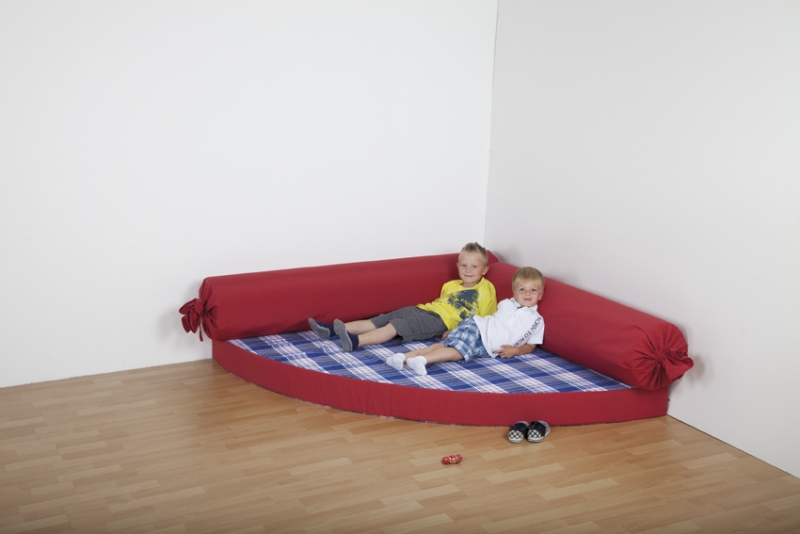 Die dreiteilige Kuschelecke besteht aus einem durchgehenden Polster und zwei Rückenrollen.