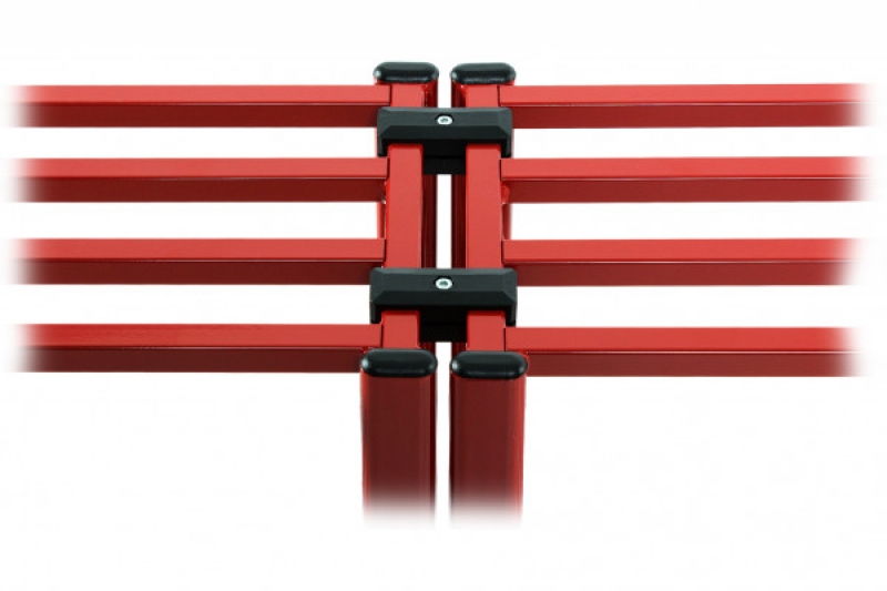 Die seitliche Längenverbindung für Grundregale dient dazu, eine beliebige Anzahl an Grundregalen gleicher Bauart, gegen Verrutschen untereinander zu sichern.