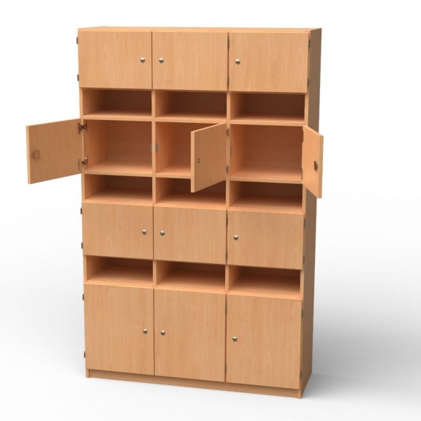 Lehrerfachschrank mit 9 abschließbaren Fächern und 9 offenen Brieffächern, BxHxT 120x190x40 cm