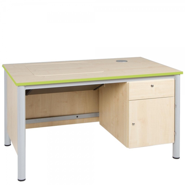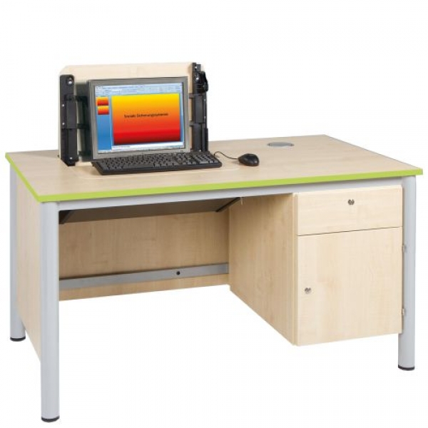 Lehrertisch mit Monitorklappe und Unterschrank rechts