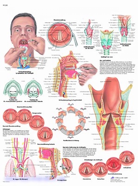 Lehrtafel "Der Kehlkopf", gedruckt auf hochwertigem (200 g) Bilderdruckpapier.
