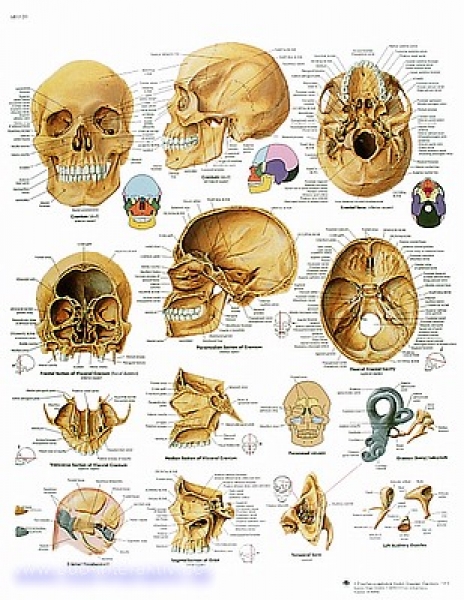Lehrtafel "Der menschliche Schädel", gedruckt auf hochwertigem (200 g) Bilderdruckpapier.