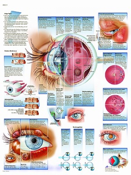 Lehrtafel "Erkrankungen des Auges", gedruckt auf hochwertigem (200 g) Bilderdruckpapier.