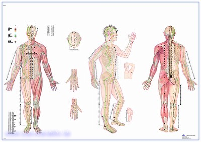 Lehrtafel "Körperakupunktur", gedruckt auf hochwertigem (200 g) Bilderdruckpapier.