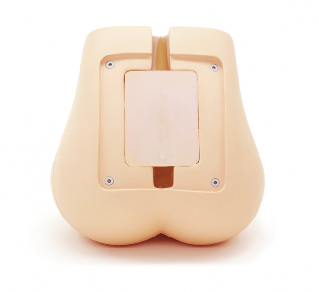Der ultraschallfähige Punktionsblock ist anatomisch korrekt und bietet ein lebensechtes Ultraschallbild. Er beinhaltet die Lendenwirbelsäule mit allen knöchernen Fortsätzen, den Epiduralraum und die harte Rückenmarkhaut.