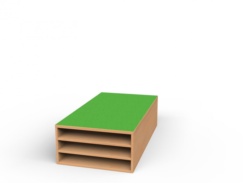 Liegepolster-Podest, ( für 3 Polster ) BxHxT 70,2 x 37 x 130 cm Korpus: aus Dekor-Spanplatten Oberfläche mit Trettford Teppich Belegt passend für 3 Liegepolster bis Format 120 x 60 cm