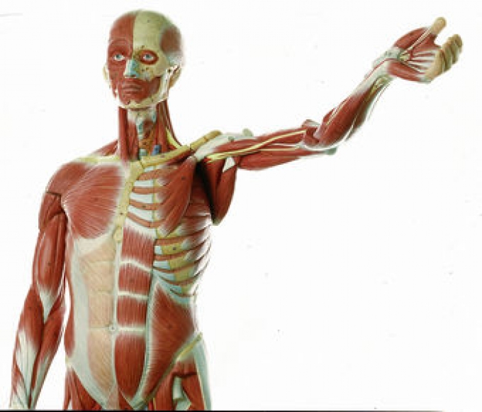Männliche Muskelfigur in etwa 1/2 natürlicher Größe, aus SOMSO-Plast®.