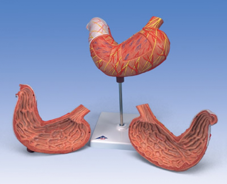 Das Modell zeigt die einzelnen Schichten der Magenwand von der Cardia bis zum Pylorus.