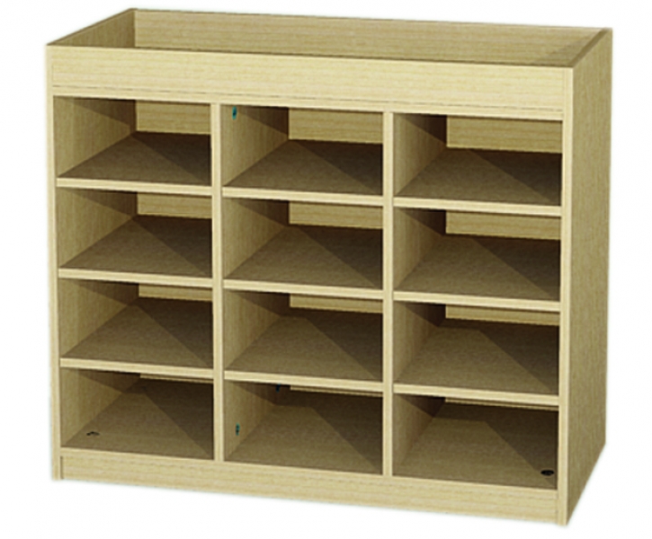 Materialcontainer 3-reihigmit AufkantungBxHxT 104,3x80 / 88x50 cm offen, 2 Trennwände, 3x3 verstellbare Einlegeböden