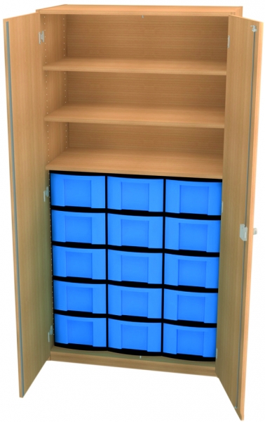 Materialschrank BxHxT 95x190x50 cm mit 15 hohen Boxen