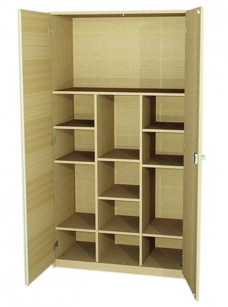 Materialschrank, BxHxT 104,3x190x50 cm 2 Türen, abschließbar, Dreholive, oben: 1 fester Fachboden unten: 2 Trennwände, 3x3 Einlegeböden