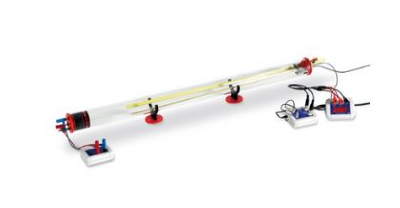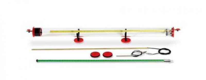Schallrohr aus Acrylglas mit Lautsprecher und verschiebbarer Skala zur quantitativen Untersuchung von Schallwellen in Luft oder anderen Gasen, insbesondere zur Messung der Wellenlänge und der Schallgeschwindigkeit.