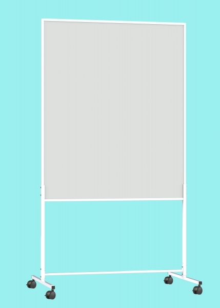 mobile Moderationswand Tafelfläche 100 x 120 cm Gesamthöhe inkl. fahrbaren Gestell: ca. 180 cm Oberfläche mit weißer magnetischer Oberfläche mit Boardmarkern beschreibbar, trocken abschichbar beidseitig nutzbar fahrbar auf 4 Rollen mit T-Fußstativ Lieferung per Spedition