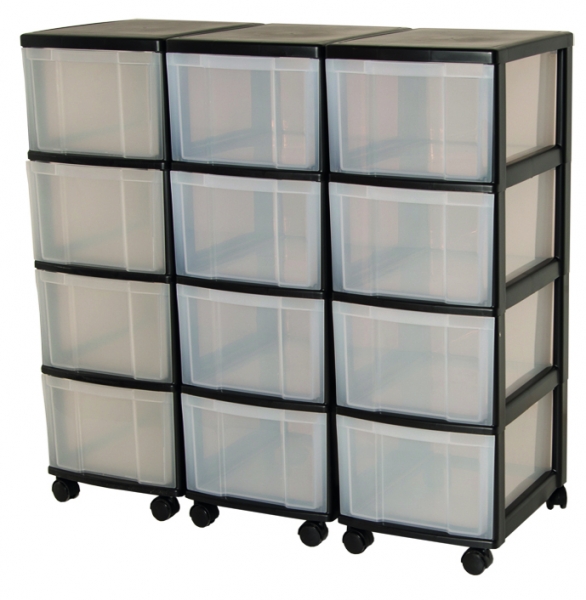 Modulbox-System High 3, Gesamtmaß: BxHxT 90x87,5x39 cm bestehend aus: 3 fahrbare Modulboxen - lose zusammengestellt mit je 4 hohen Kunststoffschüben