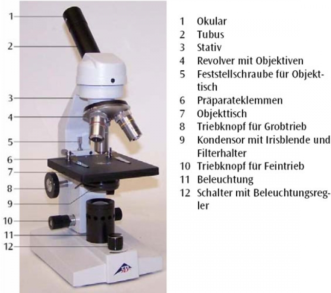 Sie sind praxisgerecht mit 3 achromatischen Objektiven bestückt und besitzen einen einfachen Objekttisch mit 2 Präparateklemmen.