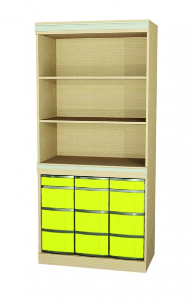 Move-Line-Schrank, BxHxT 95x215x50 cm oben: offen, 2 verstellbare Einlegebödenunten: offen, 3 Modulboxen mit je 1 flachen und 3 hohen Kunststoffschüben- Vorbereitet für Move-Line-Schienensystem- OHNE Schienen und Zubehör ( bitte separat bestellen )