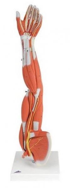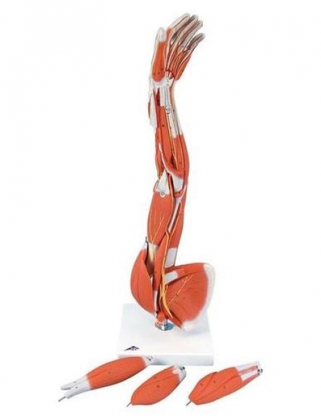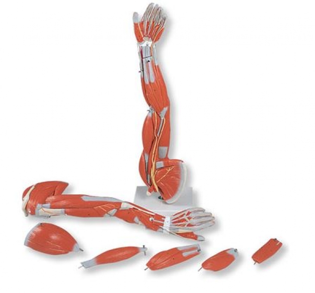 Das Muskel-Modell zeigt die oberflächlichen und tieferliegenden Muskeln des linken Arms mit Schulter, von denen Sie fünf abnehmen und detailliert studieren können.