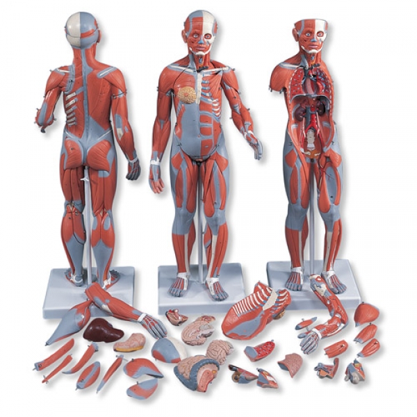 Die komplette Anatomie des Menschen im praktischen Format! Dieses 84 cm hohe Modell ist die perfekte Wahl für alle, die nicht viel Platz haben, und auf ausführliche Demonstrationen nicht verzichten wollen. Detailgetreu von Hand gefertigt, erfüllt dieses 33-teilige Modell hohe Ansprüche an Qualität und Akkuratesse - bei einem erstaunlich günstigen Preis. Die Figur, deren Strukturen in einem mehrsprachigen Beiblatt benannt sind, ist auf einem Sockel montiert und besteht aus folgenden Teilen: