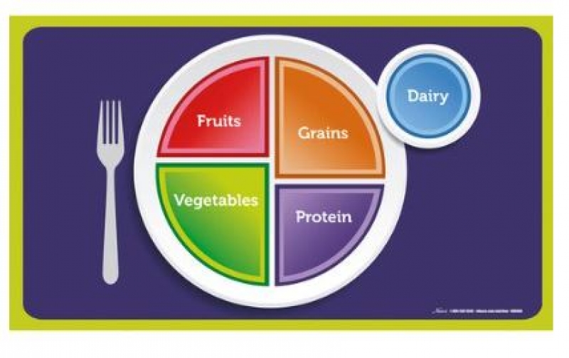 Auf den Platzmatten ist der USDA MyPlate abgebildet.