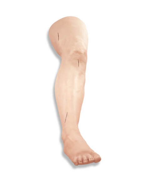 Dieses Bein ist aus einer weichen Vinylhaut über einem nähbaren Schaumstoff gefertigt und ermöglicht Hunderte von Nahtübungen. Das Bein wird mit 3 Schnittwunden geliefert, die mehrfach genäht werden können. Weitere Wunden können selbst angebracht und vernäht werden. Das weiche und geschmeidige Material gewährleistet, dass das Nahtmaterial beim Festziehen nicht ausreißt. Lieferung mit Grundausstattung für chirurgische Nähte. Gewicht: 1,2 kg