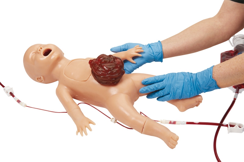 Dieses Übungsmodell wurde entwickelt um die Anforderungen des Kurscurriculums des “Neonatal Resuscitation Program“ der American Academy of Pediatrics zu erfüllen.